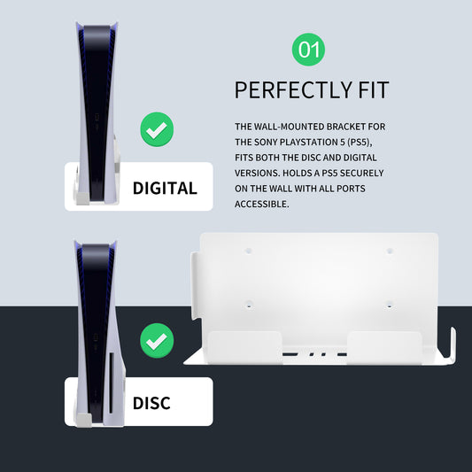 PS5 Wall Mount Kit, PS5 Wall Mount with Controller Holder and 2 in 1 Charging Cable