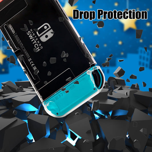 Dockable Case for Nintendo Switch, Protective Case for Nintendo Switch with a Tempered Glass Screen Protector and 6 Joy Stick Covers, Fit into The Dock Station - Clear