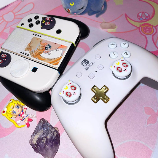 Moon Cat Thumb Grips, Sailor Luna Cute Anime Pink Blue Joystick Button Caps, Compatible with Playstation PS5 PS4 Xbox Switch Pro Controllers