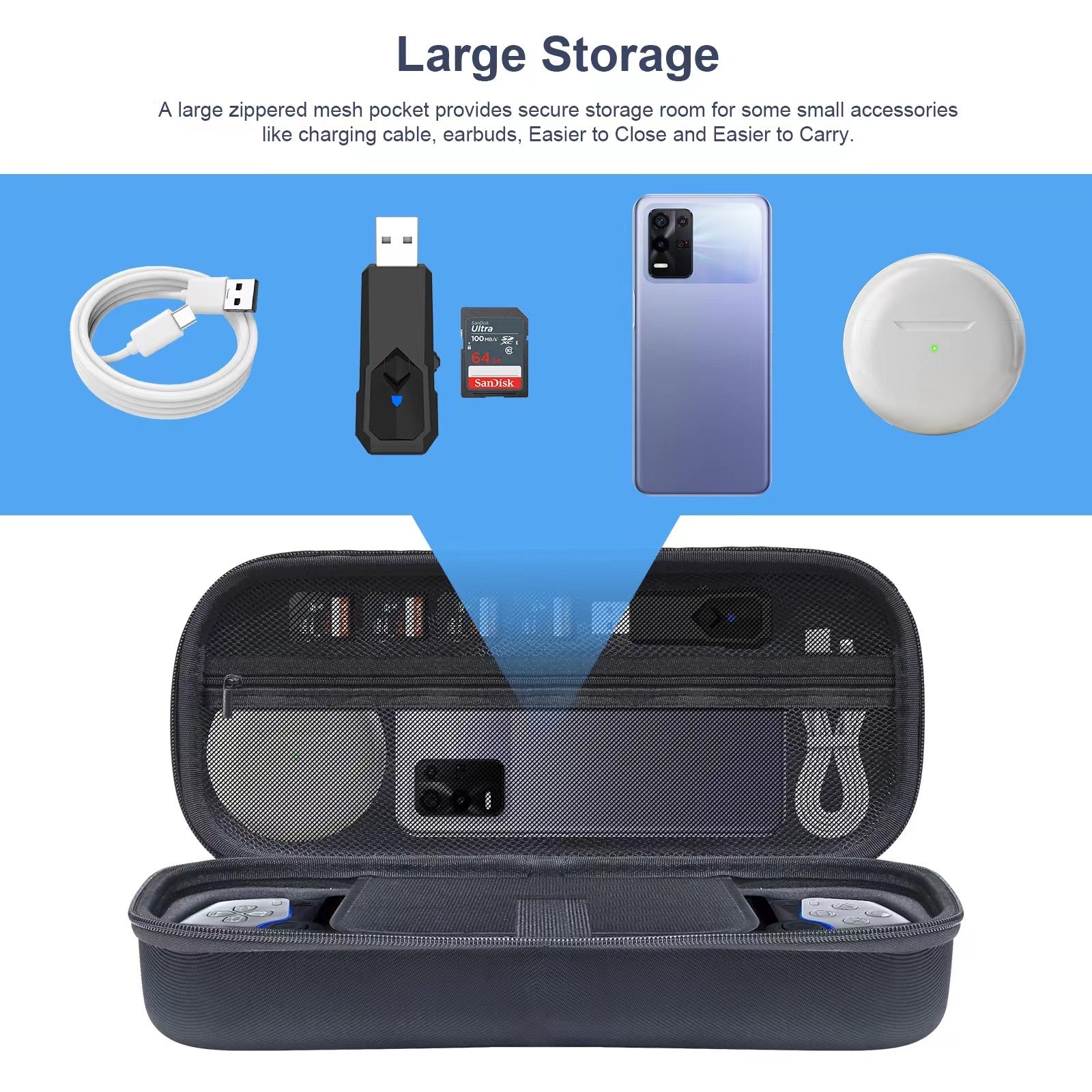 𝗩𝗲𝗿𝘀𝗮𝘁𝗶𝗹𝗲 𝗦𝘁𝗼𝗿𝗮𝗴𝗲 𝗦𝗼𝗹𝘂𝘁𝗶𝗼𝗻𝘀: Stay organized with purposeful storage features. The case includes a small webbed pouch under the Portal for secure cable storage. The interior mesh pocket is ideal for keeping your charge cable and small accessories in order. Enjoy the convenience of having everything you need in one sleek and functional package.