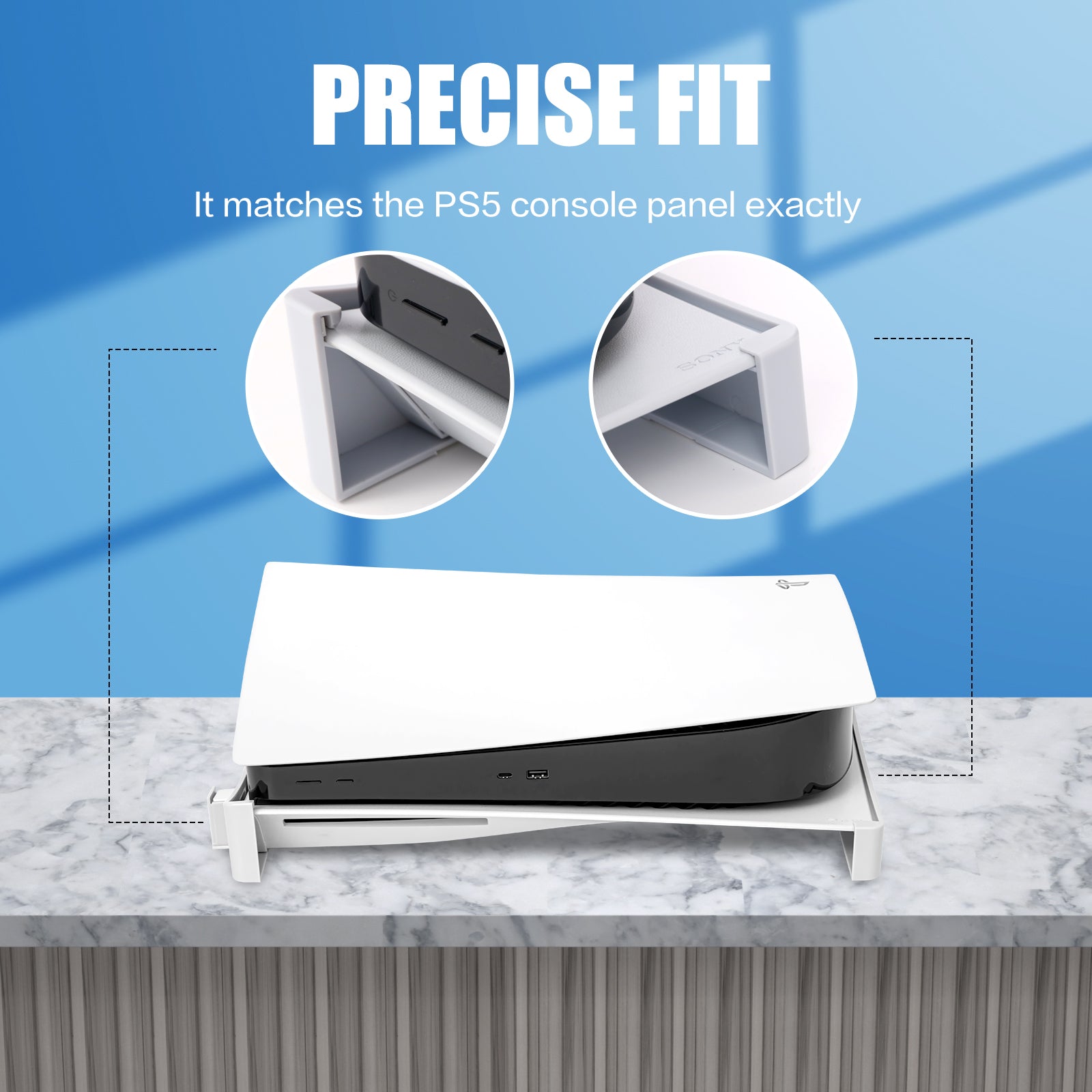 Space Saving - The PS5 Horizontal Stand is the perfect minimalist alternative to the traditional vertical orientation. The lay-flat design can place the PS5 console horizontally in the TV cabinet, which is not easy to fall and is safe and reliable.PS5 accessories base stand wouldn’t take up that much space to free your entertainment center