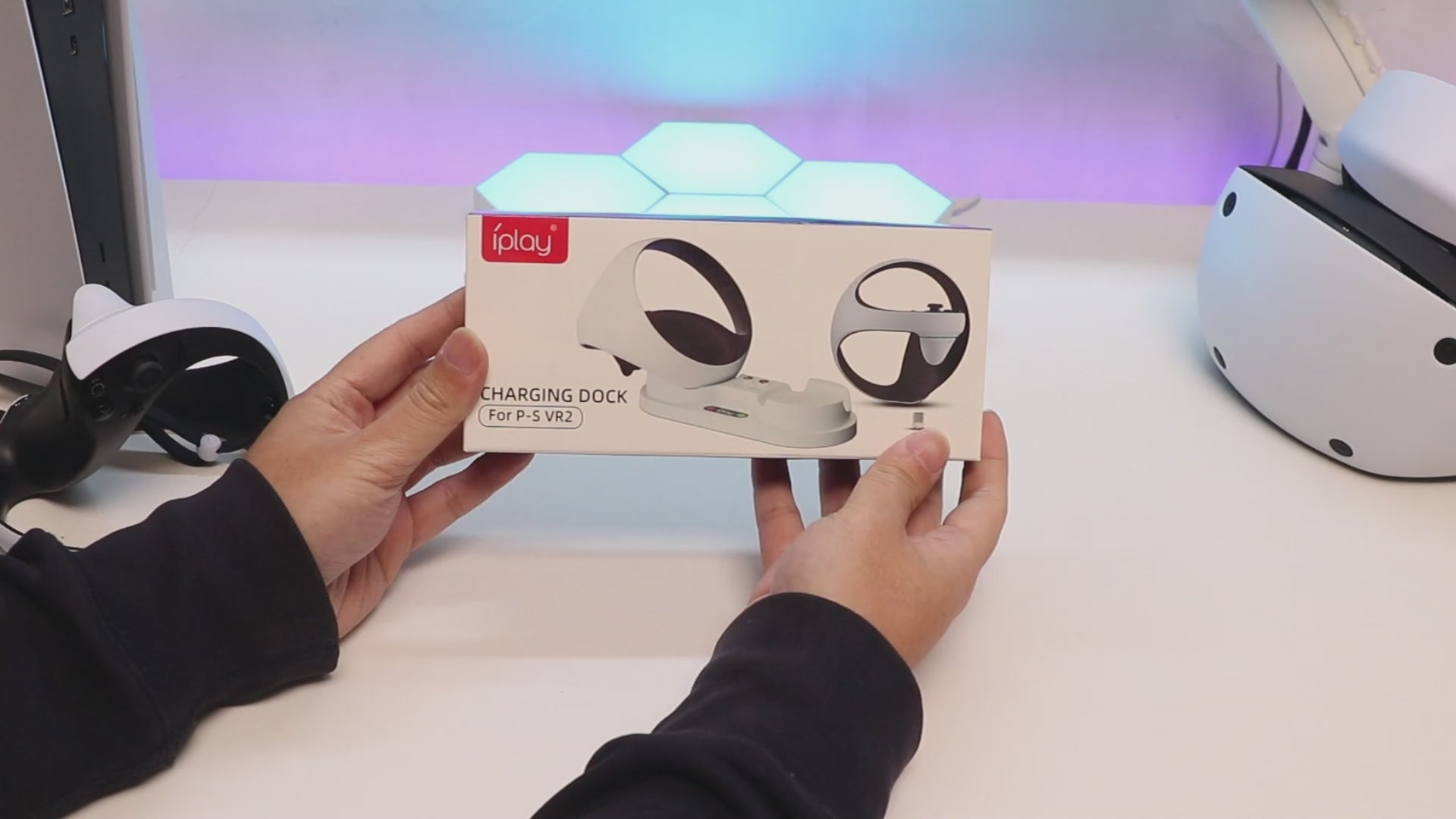 Package Include - 1 PSVR2 charging dock, 4 Type-C magnetic connector, and 1 USB To Type-C cable. The all-in-one design allows it not only to charge, but also to be a storage stand for the controllers(USB Wall Charger not included).