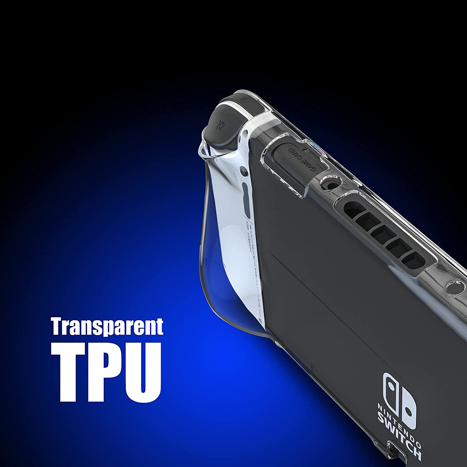Switch OLED Clear Case, Switch OLED Soft TPU Case with Tempered Glass Screen Protector and Thumb Grip Caps