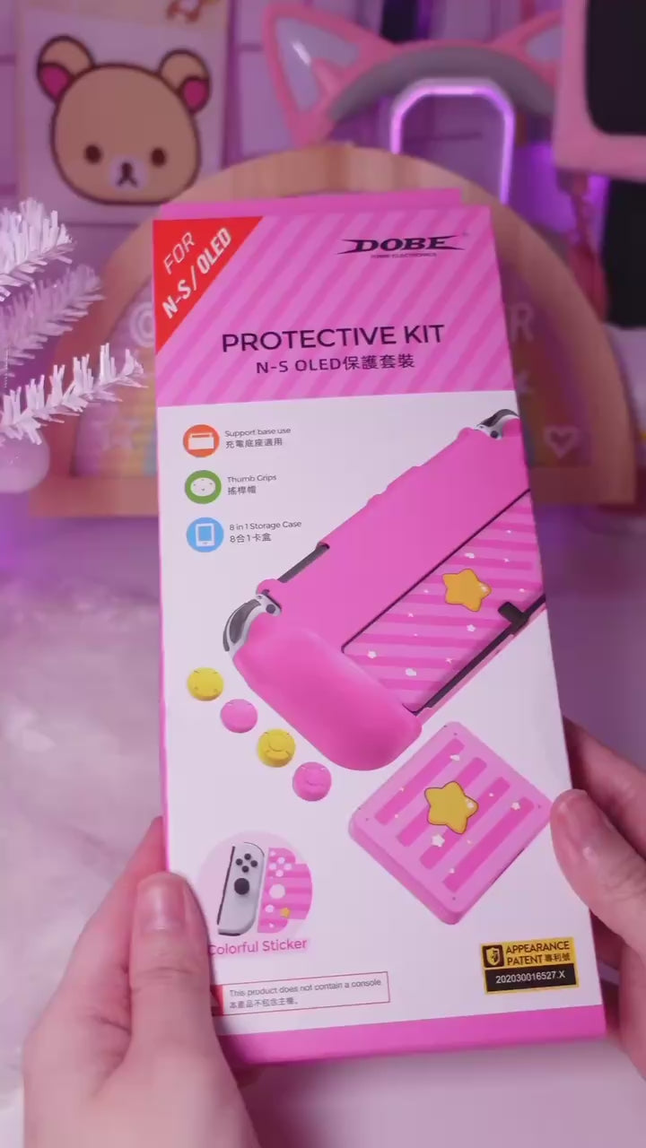 Pink Switch OLED Case - The Switch OLED Pink accessories include Switch OLED pink cover case, Switch OLED pink skins, Switch OLED pink thumb grips and Switch OLED pink game case.