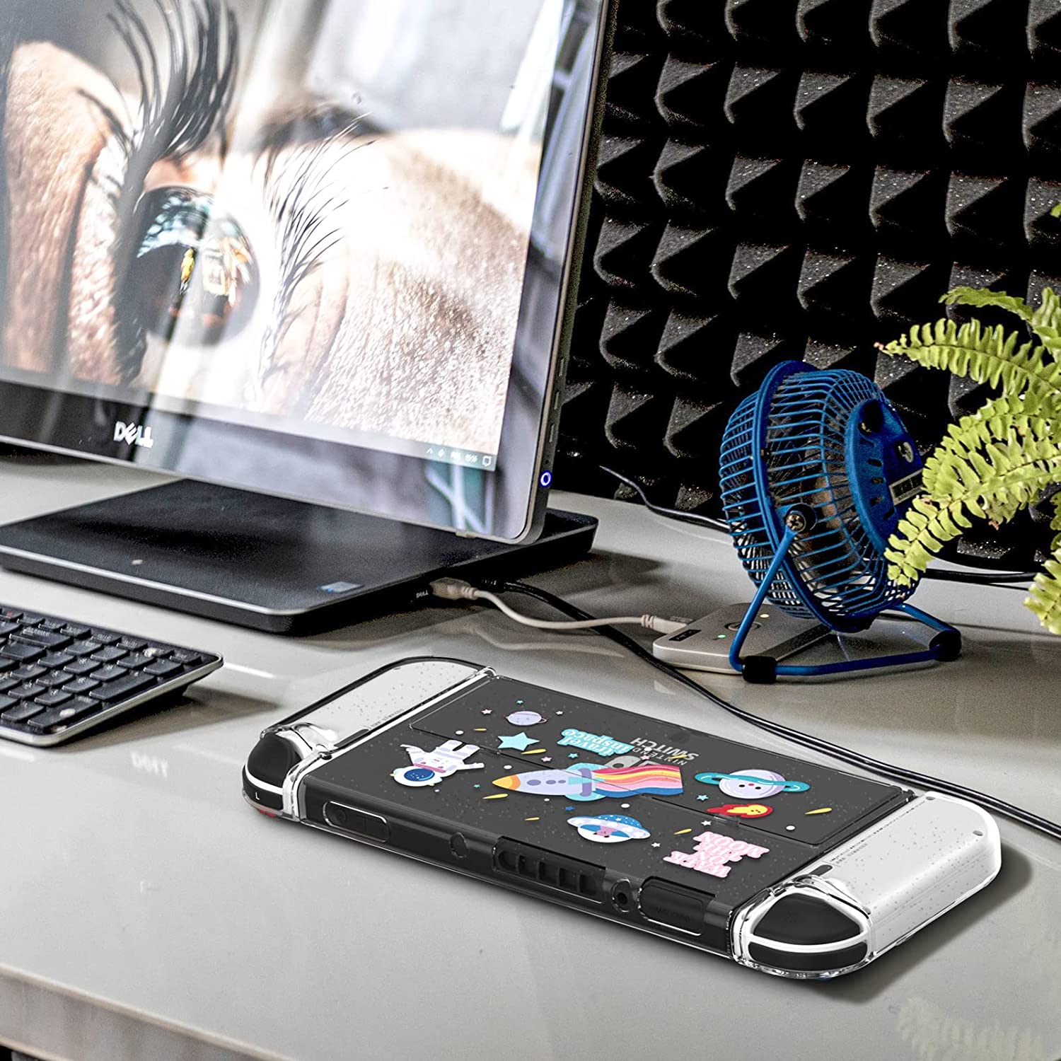 - Cute Case for Switch OLED - On the front and back of the switch OLED case has the glitter and planet printed design. It has a rocket pattern on the back of case. The glitter Shining like a starry sky while still letting you see the back of your switch OLED