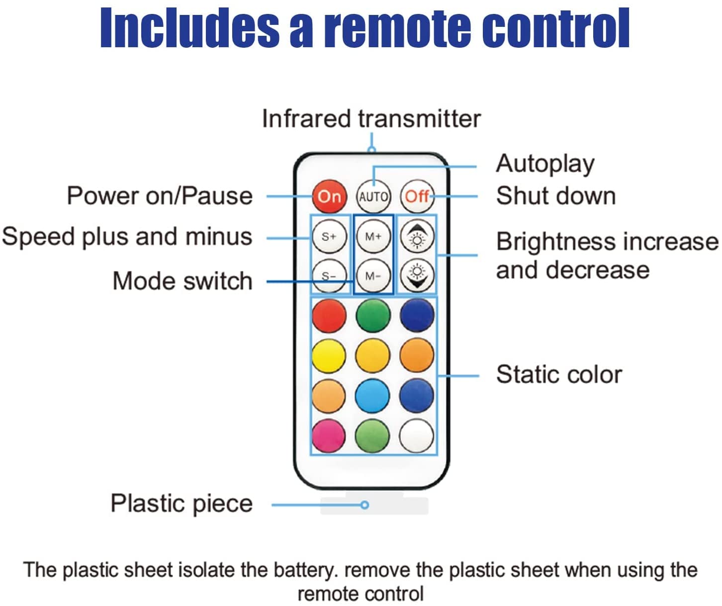 DIY LED Kit - The remote control can control 12 kinds of monochrome. The remote control has the function of mode selection, brightness adjustment, and rhythm adjustment.